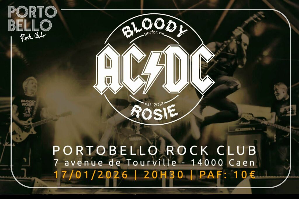 Bloody Rosie THE Tribute to AC/DC sera de retour à Caen au « Portobello Rock Club« , samedi 17 janvier 2026 à 20h30 !