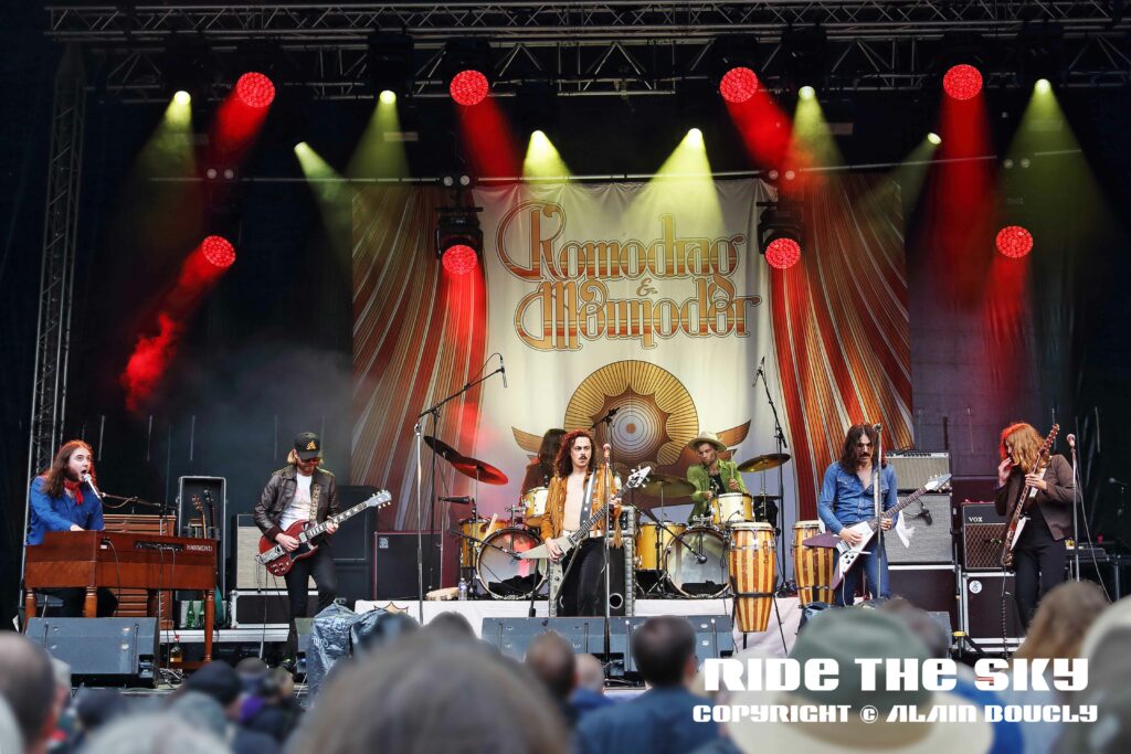 C’est la connexion de deux groupes, Moundrag et Komodor. Moundrag est un duo de prog, composé de Camille à l’orgue et Colin à la batterie, deux frères originaires de Paimpol. Nous les avons rencontrés à Rennes lors d’un concert de Komodor, et leur avons proposé de jammer. Il nous ont donc rejoints à Douarnenez pour reprendre des standards de rock et de blues, puis faire un concert en regroupant les deux formations, De fil en aiguille, nous avons travaillé les morceaux pendant le covid, et monté un set avec cette formule, puis envoyé les maquettes à Jean-Louis Brossard, le programmateur des Transmusicales de Rennes qui nous a fait jouer lors de l’édition 2021.