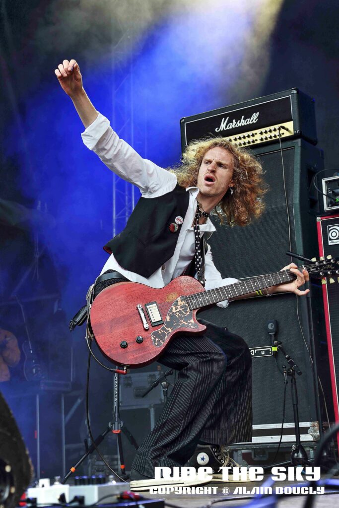 Il est clair que le côté inédit de la tête d’affiche de ce samedi a su fédérer le plus grand nombre, attiré par la montée en puissance de Blues Pills, ce groupe suédois, qui écume les plus gros festivals européens depuis plusieurs années. L’arrivée de la frontwoman Elin Larsson va capter toute l’attention, car elle déborde d’énergie, sillonnant la scène de long en large, tout en faisant étalage d’une voix à la fois puissante et rugueuse, qui, par moments, n’est pas sans rappeler celle de Janis Joplin. Évoluant dans un registre résolument vintage, l’inspiration est directement liée aux 70’s, avec une consonance blues psychédélique, mêlée à des passages davantage orientés Hard Rock. Quatre titres du récent « Birthday », paru en 2024, vont mettre sur orbite le quatuor suédois, avant de piocher dans une discographie déjà conséquente, dont ressortira le millésime 2020 avec « Holy Moly! », représenté par « Proud Woman », « Low Road », « California » et « Bye Bye Birdy » en guise de final. Pour son dernier gig en remplacement du batteur habituel André Kvarnström, absent depuis plusieurs dates suite à une blessure, la souriante Lina Anderberg aura été hyper efficace ce soir.