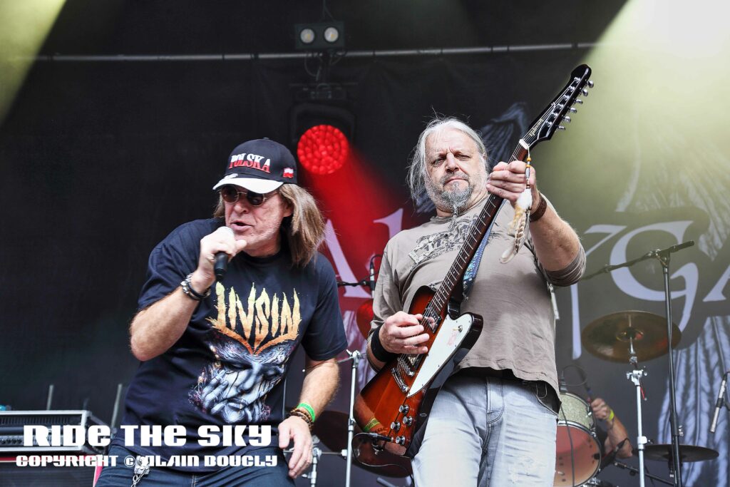 L’univers de Daran semble déconcerter quelque peu les spectateurs, dont la majorité d’entre eux ont trouvé refuge sous les tentes du Metal Market. Même s’il reste les plus téméraires devant la scène sous une pluie qui a redoublé d’intensité, le trio a fait preuve de professionnalisme en assurant le set dans ces conditions. Jean Jacques, le guitariste chanteur est également un compositeur, connu pour avoir collaboré avec Johnny Hallyday, entre autres. Le chant en français de ce rock incisif est direct, sans fioritures, essentiellement issu de « Grand Hôtel Apocalypse » enregistré en 2024. Musicalement, il manque ce petit quelque chose pour enflammer le public qui a du mal à se montrer réceptif, malgré les efforts qui n’auront pas été ménagés.