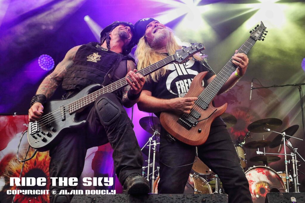 Freak Kitchen n’est pas inconnu des fidèles du festival, puisque c’est la 3ème fois que les suédois se produisent à Raismes, après 2006 et 2015. Le métal hybride des suédois est un mélange de heavy, prog, rock et jazz, qui semble partir dans tous les sens, mais qui ne laisse rien au hasard, les compositions étant structurées avec une précision chirurgicale. Composé de « IA » Eklundh au chant et à la guitare, Björn Fryklund derrière les fûts et du bassiste chanteur Christer Örtefors, le trio nous propose majoritairement les morceaux issus de « Confusion to the Enemy » et « Move », occultant le dernier opus en date paru en 2024. Seul le titre éponyme, « Everyone Gets Bloody« , interprété en ouverture du set, sera mis à l’honneur. Les gouttes d’eau se faisant plus rares, la technique hors normes des 3 protagonistes et la bonne humeur partagée ont revigoré une audience conquise.
