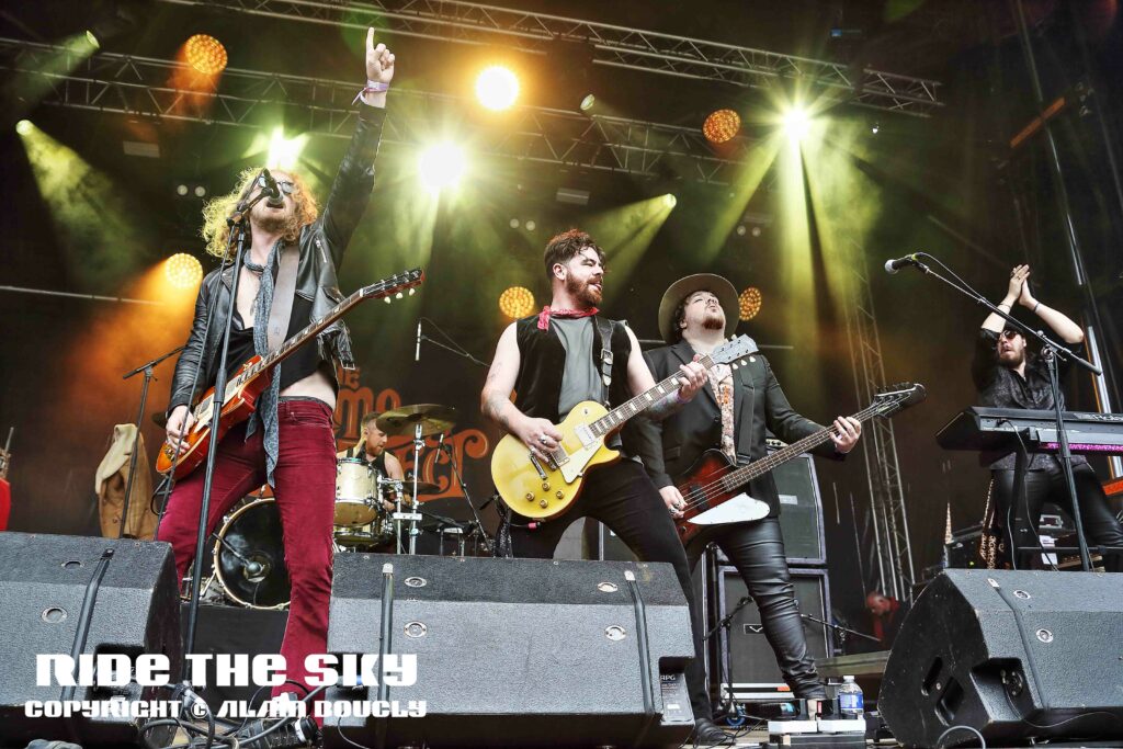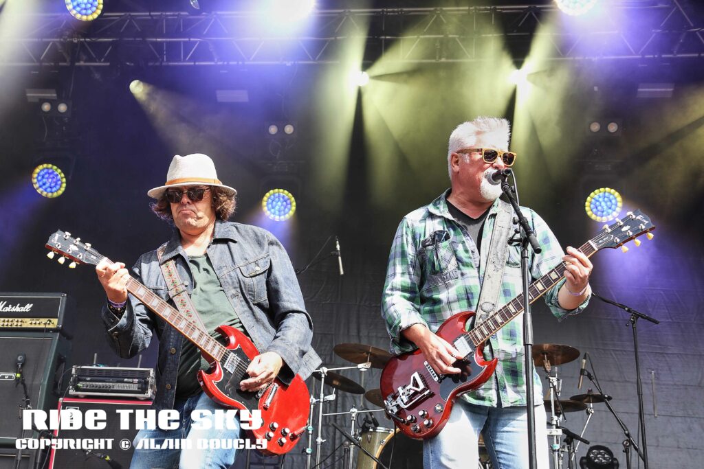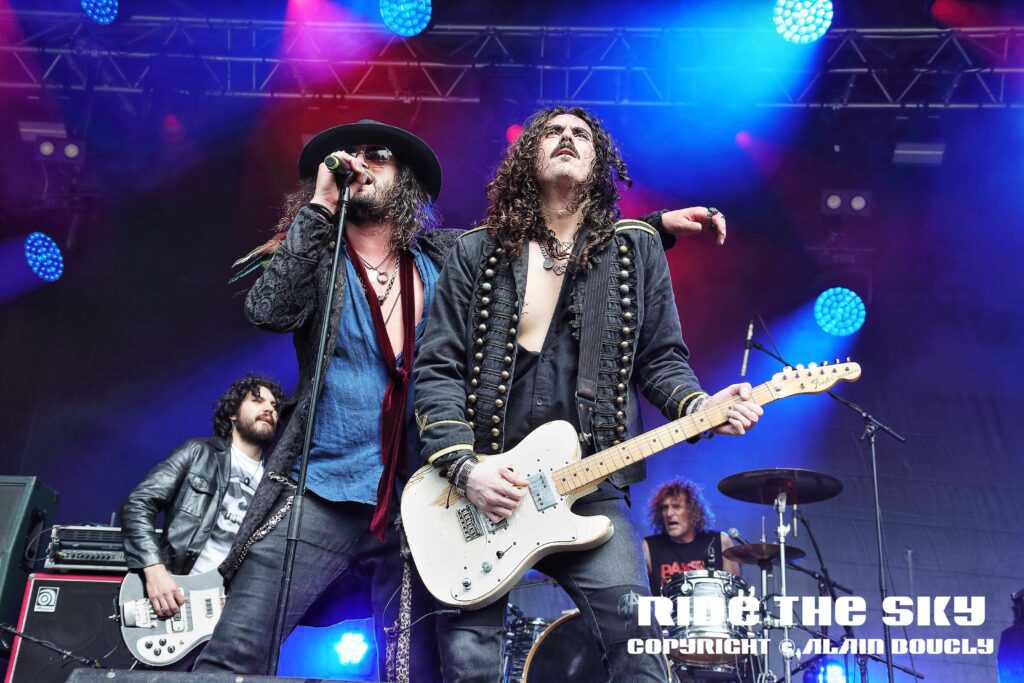 Il faut souligner la gestion parfaite du timing des changements de plateau, qui est respecté à la minute près. Il aura suffit d’un petit quart d’heure de mise en place pour accueillir The Karma Effect, dont le style correspond en tous point à l’ADN du festival. Nous sommes en présence d’un jeune groupe anglais, formé en 2020, influencé par les racines du Blues et du Rock, représentés par Nazareth ou Free. Il suffit de voir leurs looks pour s’en convaincre, nous sommes en présence d’un collectif à l’esprit vintage, dont le classic Rock a tout pour plaire. Les compositions sont bien en place, valorisées par d’harmonieuses mélodies, bien rythmées, qui vont séduire le plus grand nombre. Dans le chapitre des découvertes, The Karma Effect a pleinement rempli son contrat, grâce à une qualité musicale et d’interprétation appréciée de tous.
