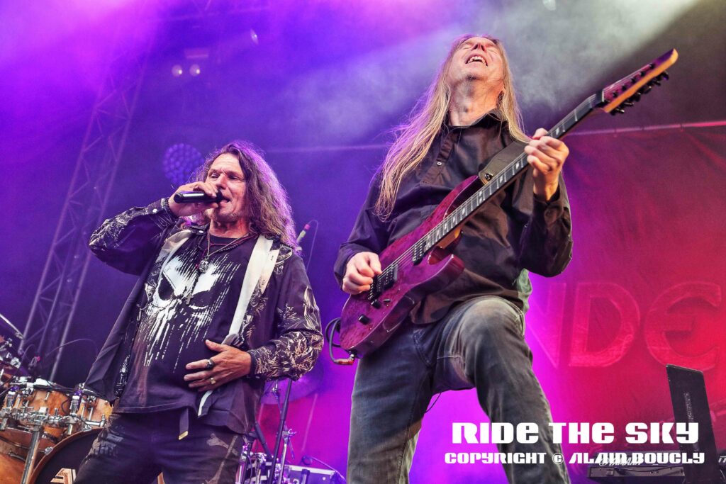 C’est au tour de Vanden Plas de proposer leur metal progressif, à une audience désormais plus compacte dans la fosse, composée de connaisseurs adeptes de ces longs chapitres mélodiques. Les Allemands ont réussi à nous faire rentrer dans leur monde en alternant les passages « heavy » et les climats plus nuancés, chaque musicien démontrant une qualité d’interprétation irréprochable. Derrière le micro, Andy Kuntz fait preuve d’une grande amplitude, tout en modulant les intonations d’une voix sans aucune faiblesse sur l’ensemble du concert. Deux compositions récentes éditées en 2024 seront mises à l’honneur, « Sanctimonarium » et « My Icarius Flight », issues de « The Empyrean Equation of The Long Lost Things », sans oublier l’excellent « Postcard To God » pour en terminer avec 70 minutes d’un show, bien servi par un son à la hauteur de la performance. Fidèles à leurs habitudes, les allemands ont régalé les fans, en proposant des compositions originales, qui nous plongent dans un univers épique et diablement jouissif, interprété avec beaucoup de maturité. Ce qui est somme toute logique, pour un groupe qui affiche déjà 40 années de service au compteur.