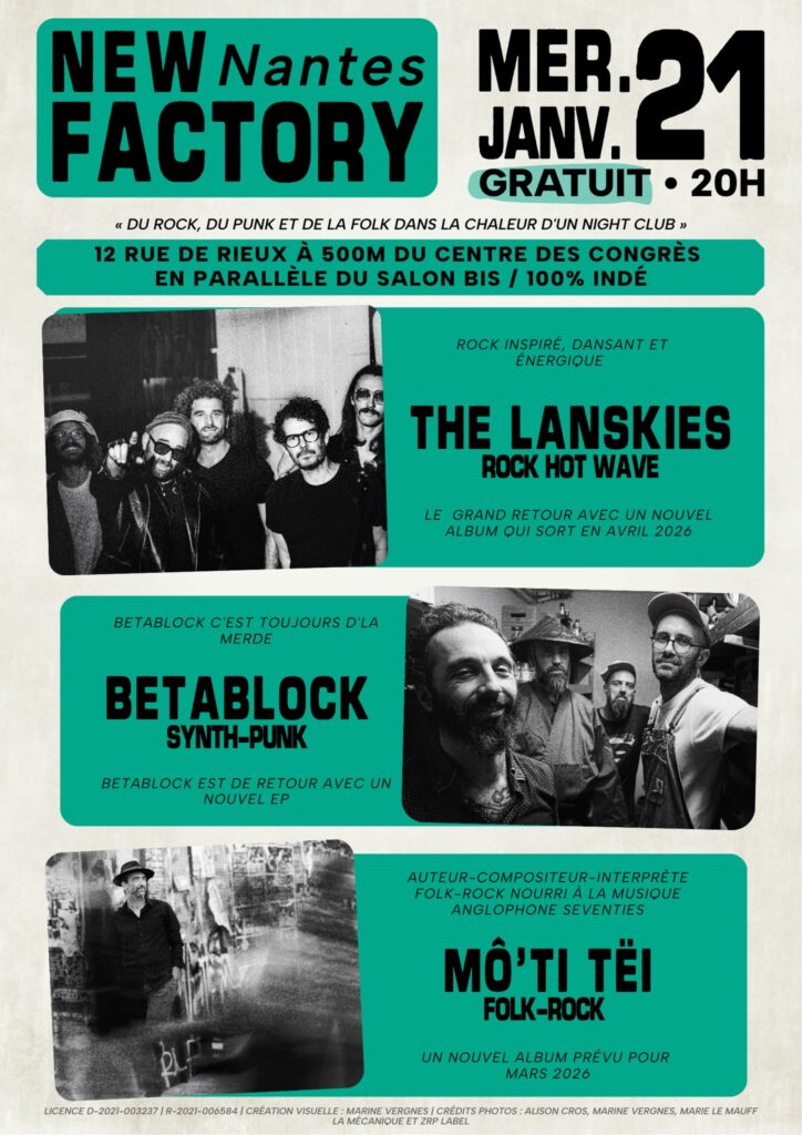 Mô’Ti Tëi sera en concert le 21 janvier à partir de 20h au « New Factory » à Nantes (44), dans le cadre du BIS – Biennales Internationales du Spectacle.