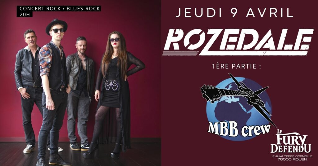 Rozedale sera en concert jeudi 9 avril 2026 à Rouen au « Fury Defendu ». MBB Crew assurera la première partie.