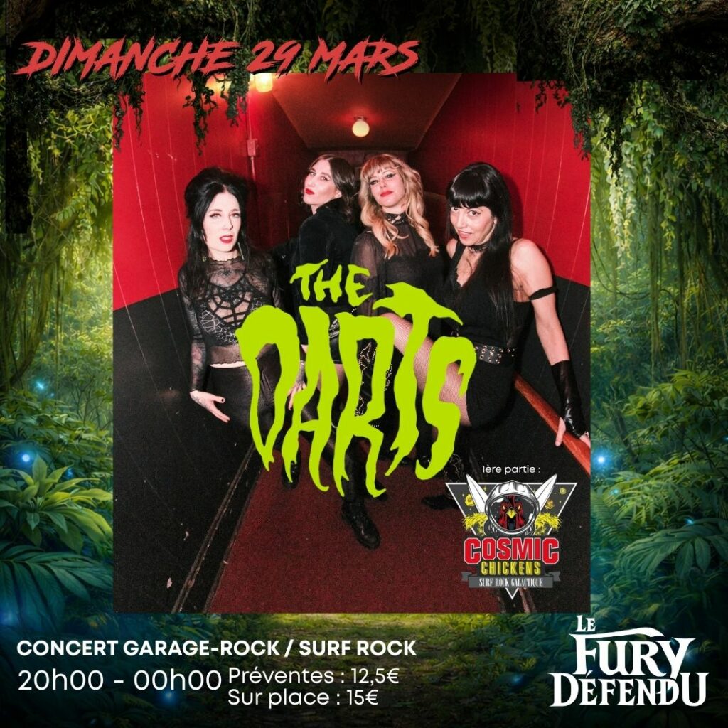 Après leur concert remarqué au 106 le 22 septembre 2024 lors du salon du disque, le quatuor féminin The Darts, emmené par la frontwoman Nicole Laurenne, est de retour dimanche 29 mars 2026 à Rouen au « Fury Defendu ». Cosmic Chickens assurera la première partie.